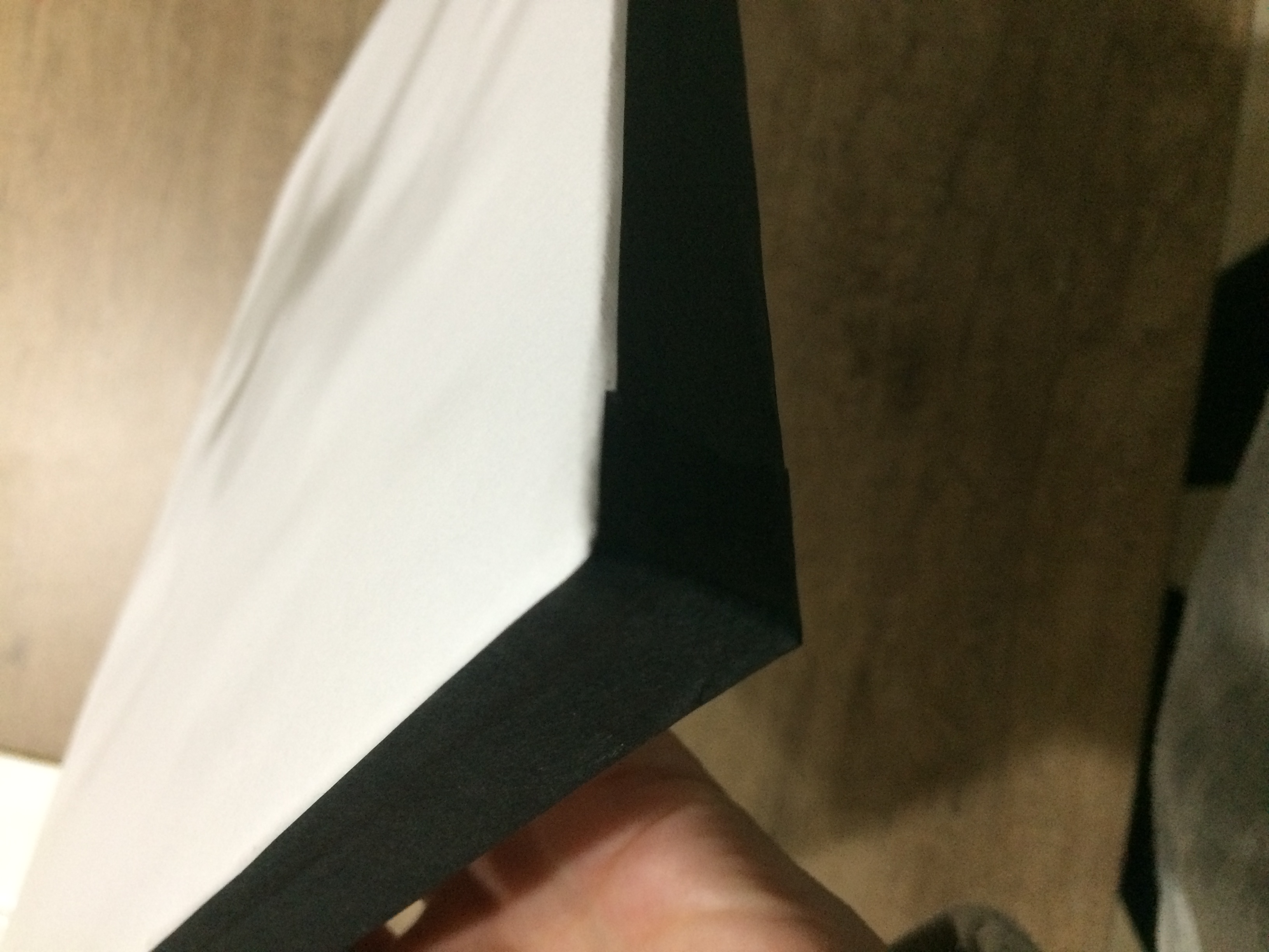 理想は下記の画像のように、角を折り込んで張り込むと見栄えが良く美しいのですが、手間がかかって難しいので私はあまりやったことがありません。大き目のパネルを使って、額に入れる時に周りをカットしています。