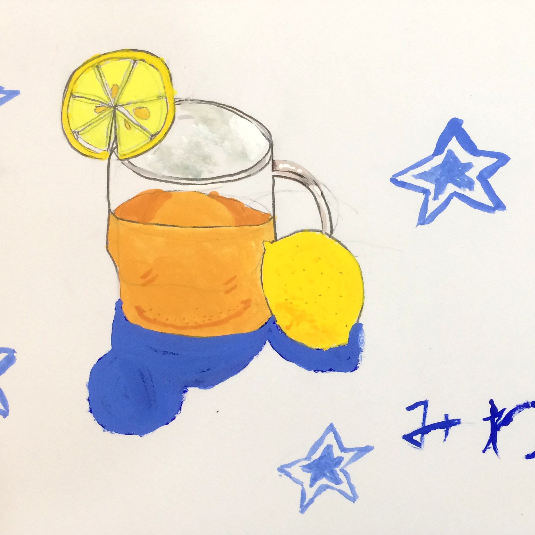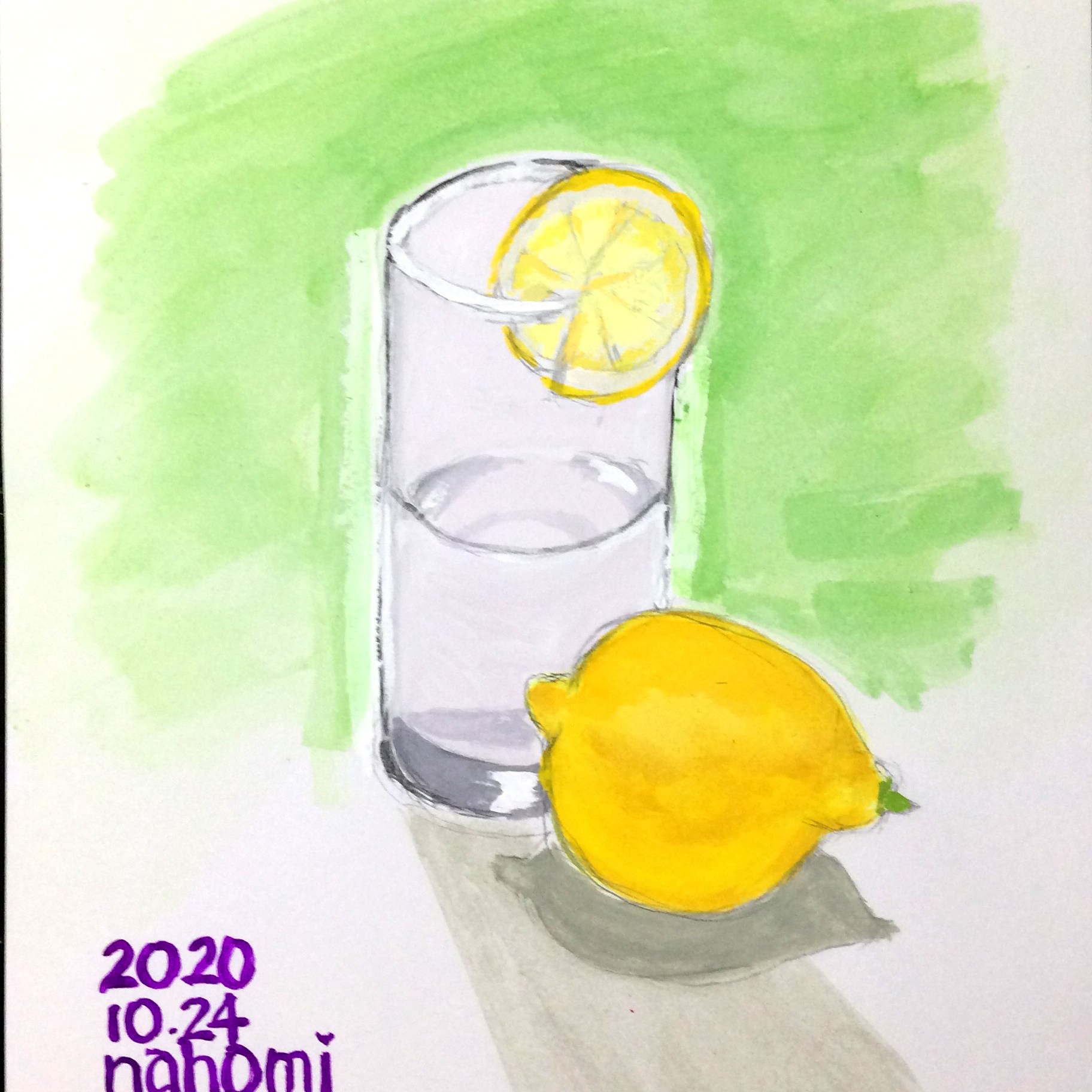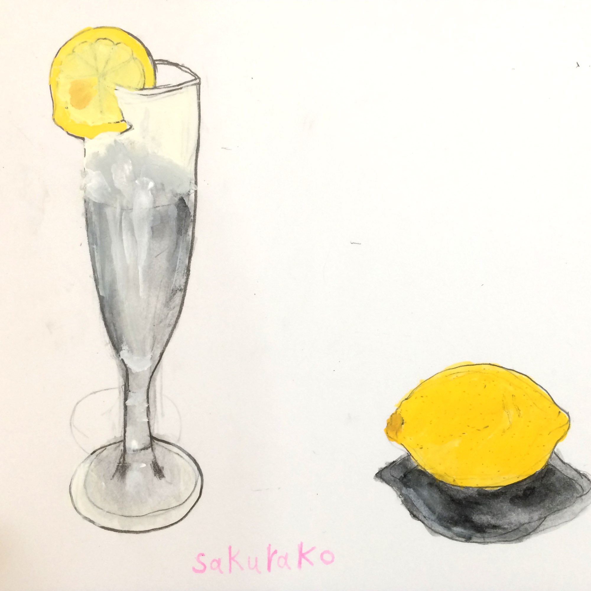 難しい透明なグラスにも挑戦しました。光の反射が難しいですが、良く観察すると、上下左右色が違うんです。モチーフを観察する時は、背景に白い紙を置くと見やすくなります。
