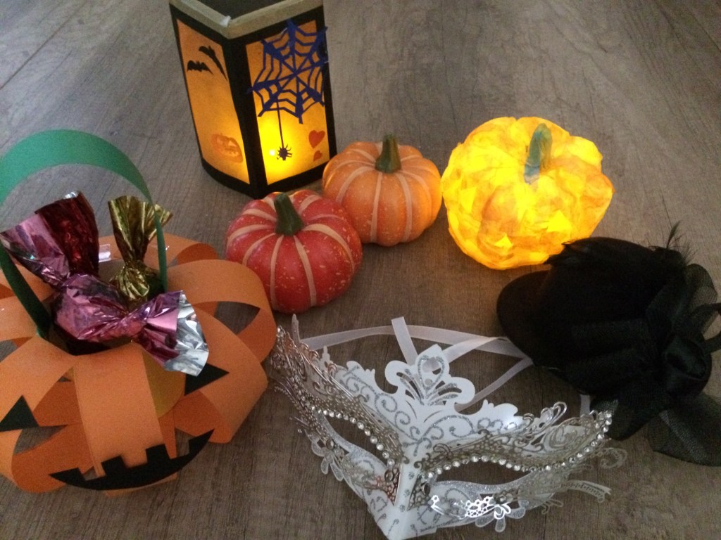 出張授業をしている寺子屋では、ハロウィンのランタンと画用紙でお菓子の入れ物を作りました。仮装や、小物作りも楽しいですね!