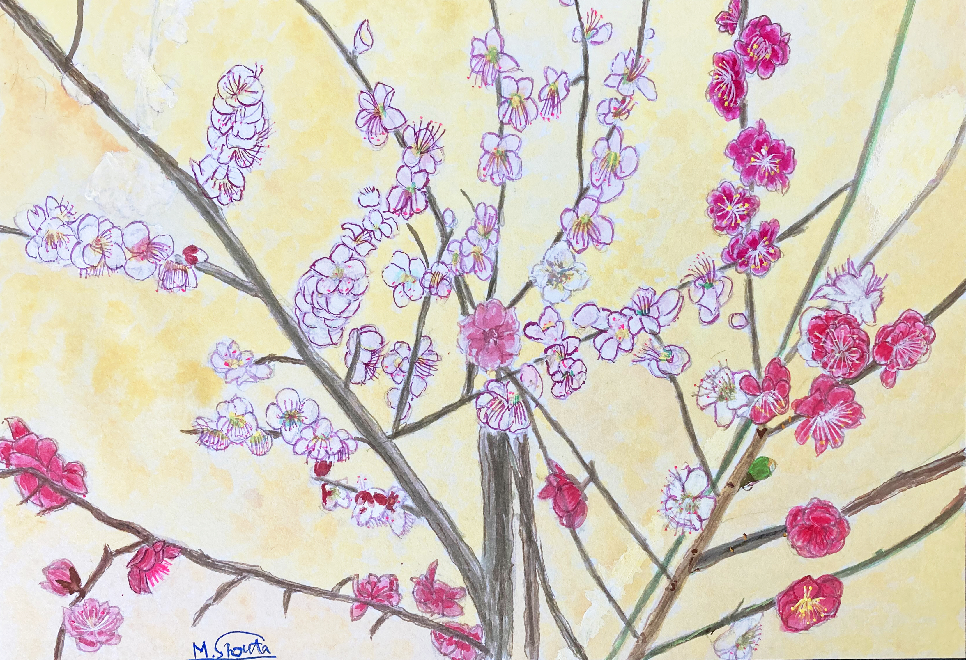 他にも梅の花やチューリップ、桜もちなど春のモチーフを描きました。作品を作るたびに、皆さんの上達ぶりに驚いています。