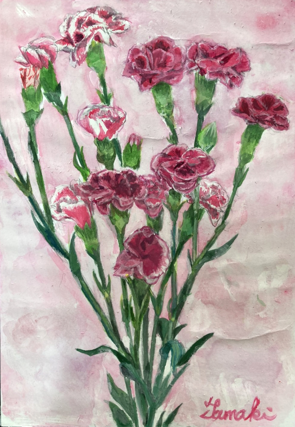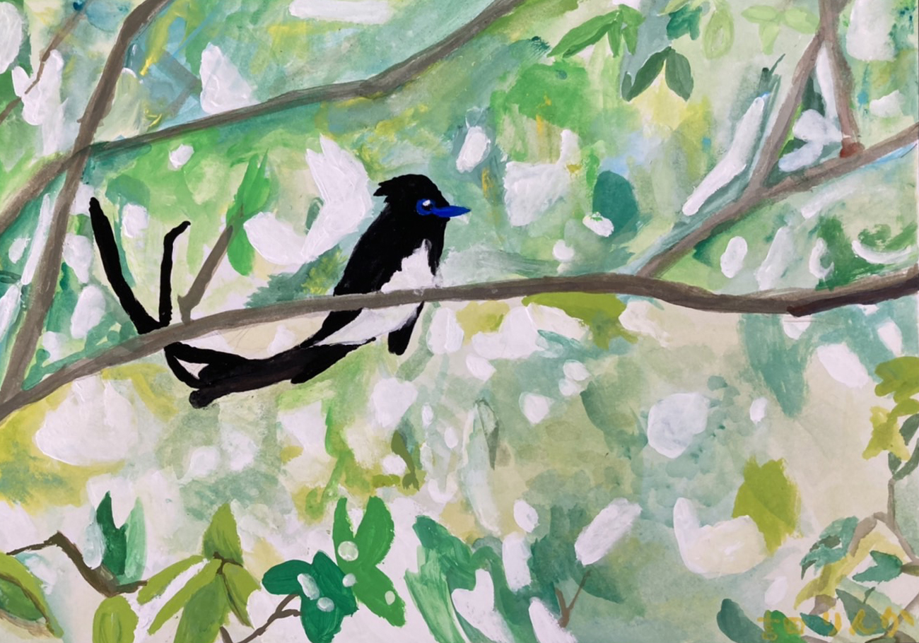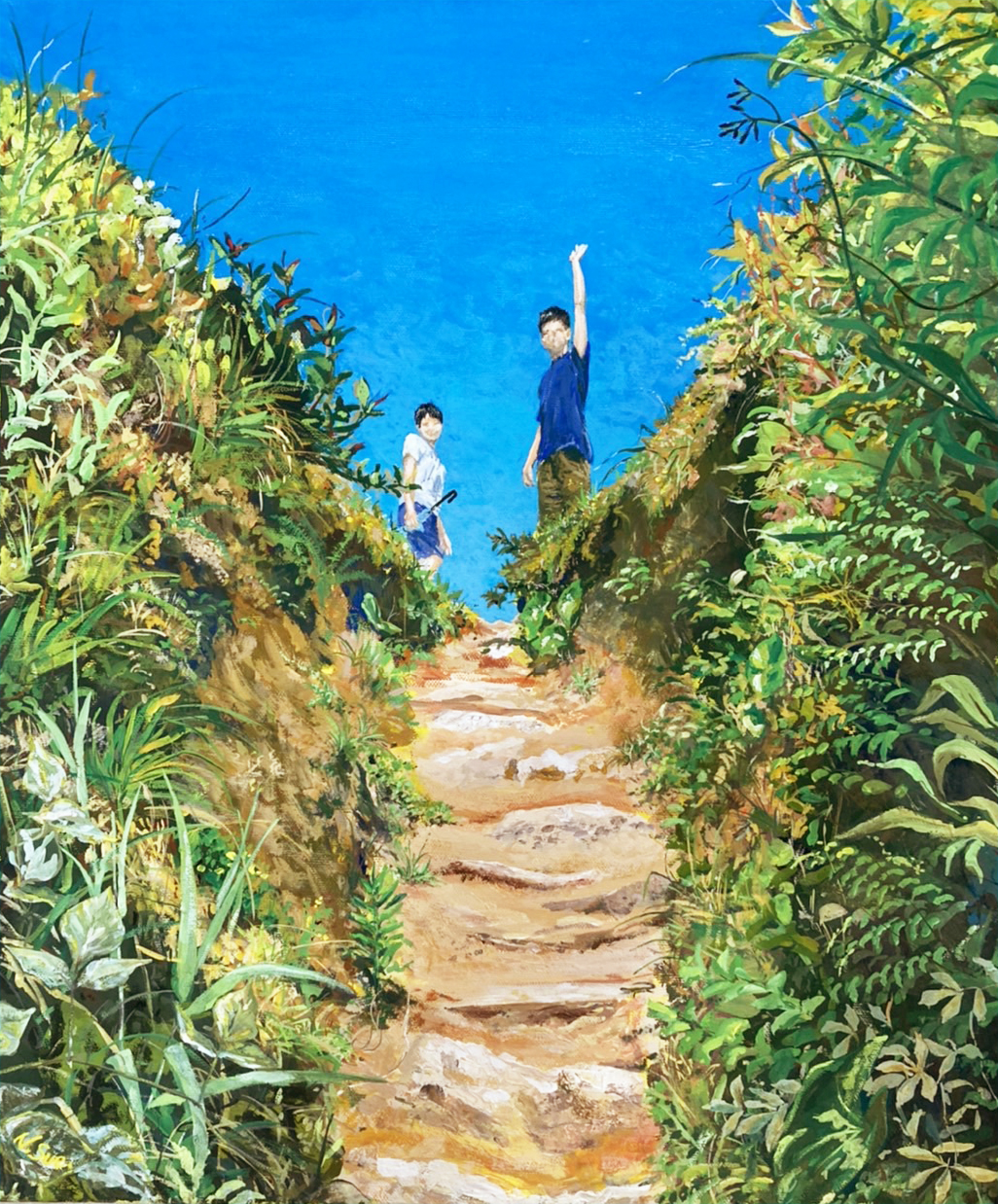 透明水彩とアクリルガッシュの二つの絵の具を使い分けています。落ち着いた色味で、下書きの鉛筆の線を活かしたい時は透明水彩で描きます。逆に明るい色で形をはっきり見せたい時には、アクリルガッシュを使います。